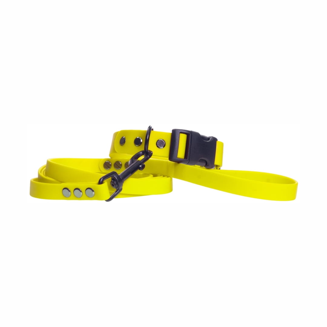 Wodoodporna, lekka obroża dla psa z plastikową klamrą dla psa wykonana z materiału Biothane® o szerokości 19mm w kolorze żółtym neonowym.