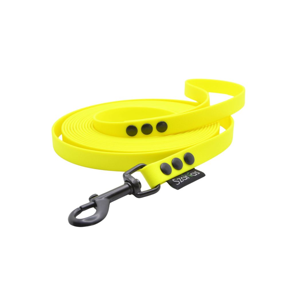 Lekka, wytrzymała i wodoodporna smycz wykonana z materiału PCV o długości 5 metrów. Doskonale sprawdzi się podczas codziennych spacerów oraz jako narzędzie treningowe do nauki przywoływania.